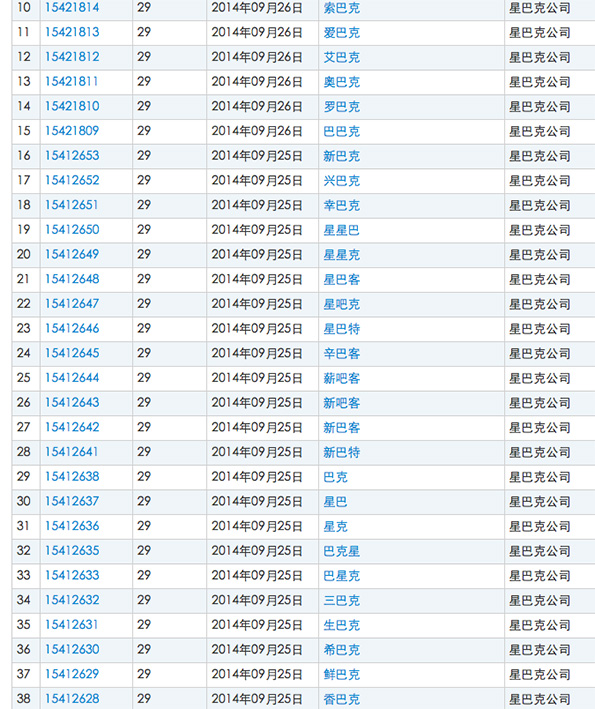 星巴克公司在防御性商标的注册上可谓脑洞大开,仅在商标国际分类“29”类之下,就注册了“索巴克”、“辛巴克”、“新巴克”、“兴巴克”、“星巴特”等几十个商标。