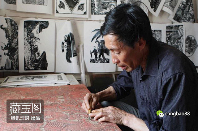 【中越边境上的“版画村”】相较于上面三个活跃于收藏市场上的村落,位于云南省文山州马关县仁和镇的阿峨新寨村显得更“高大上”一点,因为从这里出来的农民画作曾被定为国礼!2009年,20幅由村民绘制的版画被外交部选定为国礼赠送给意大利等外宾。(上图为寨村版画协会会长卢正林,图片来源自云南民族旅游网)